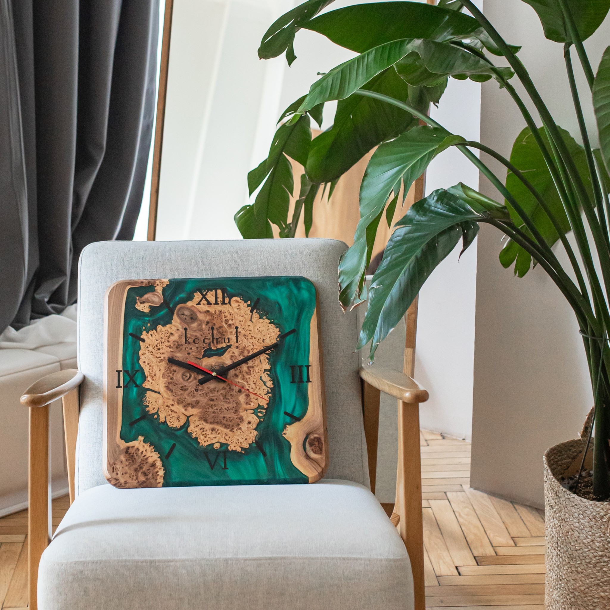 Quantum — wall clock made of rock elm and epoxy resin
