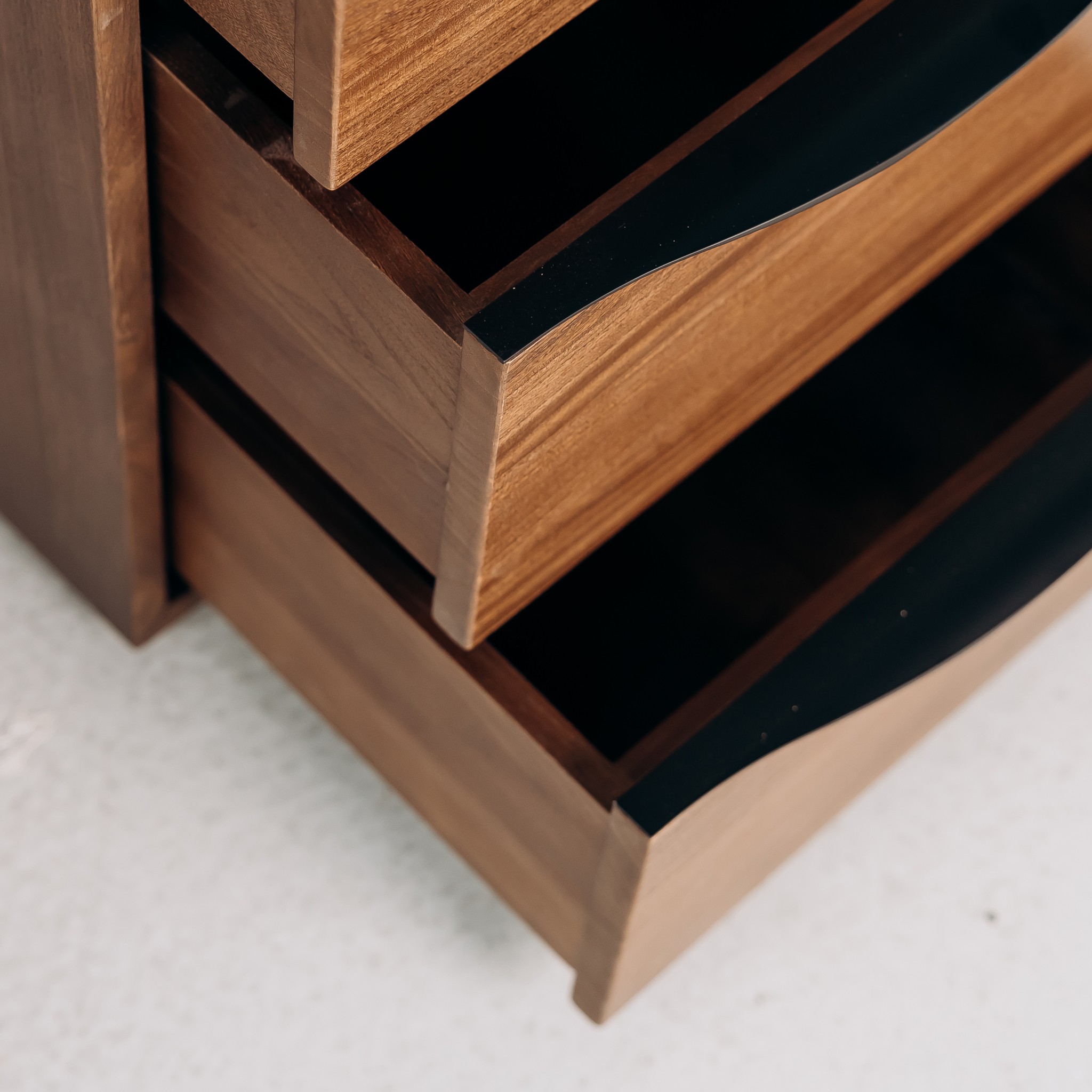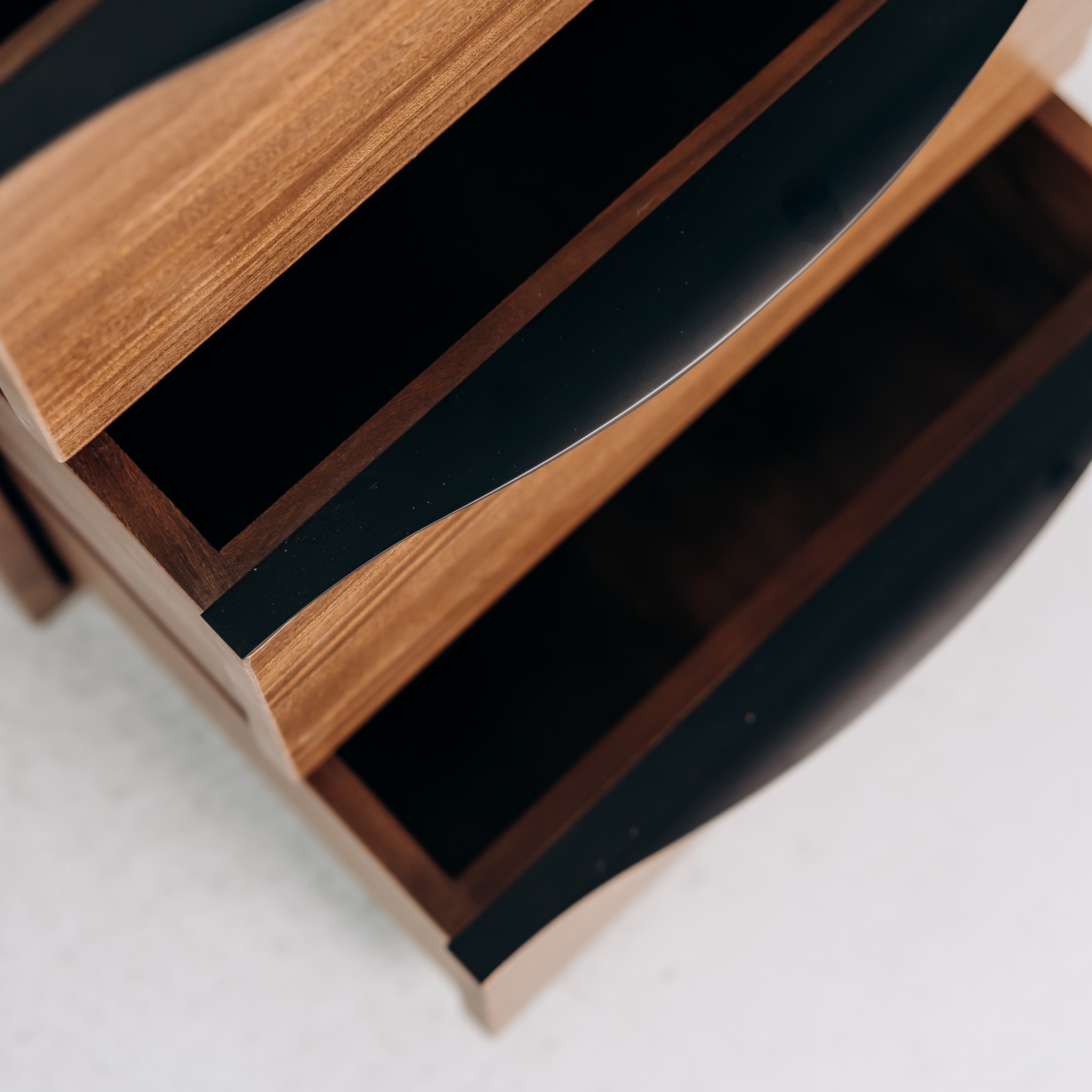Carpathian ash is strong, durable, and structurally stable. All joints are fitted precisely and handcrafted, ensuring long-term reliability. Premium hardware guarantees smooth drawer movement. The protective lacquer preserves the natural tactile feel of the wood while resisting scratches and stains.