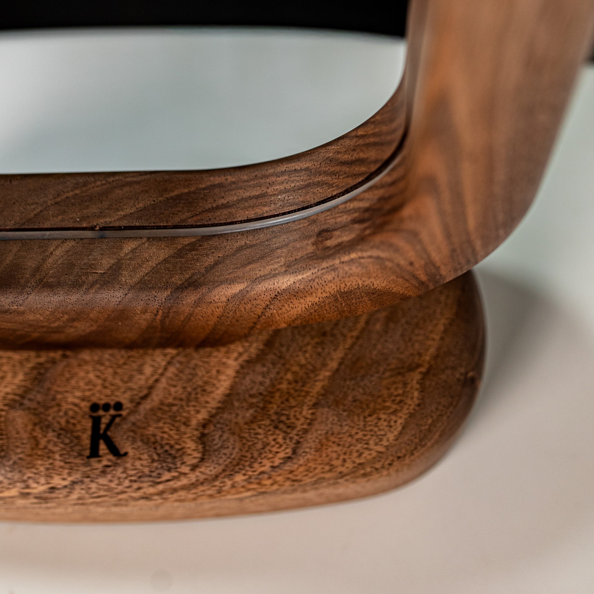 We combined the expressive texture of European walnut with warm LED lighting that highlights the natural lines of the wood.