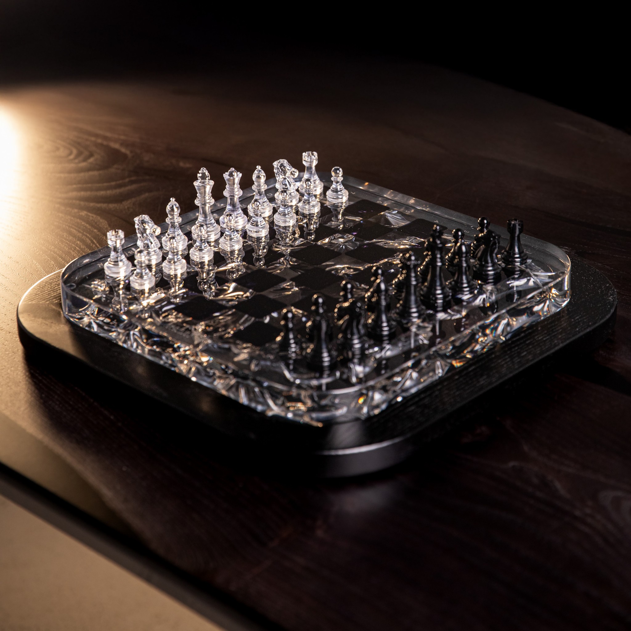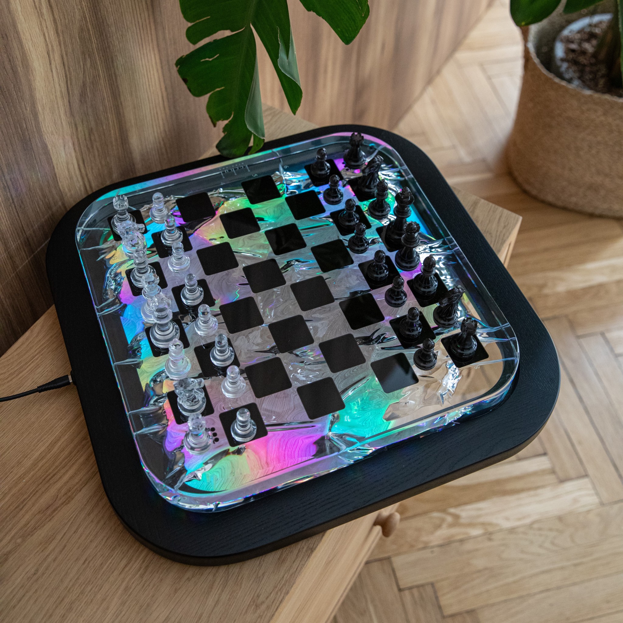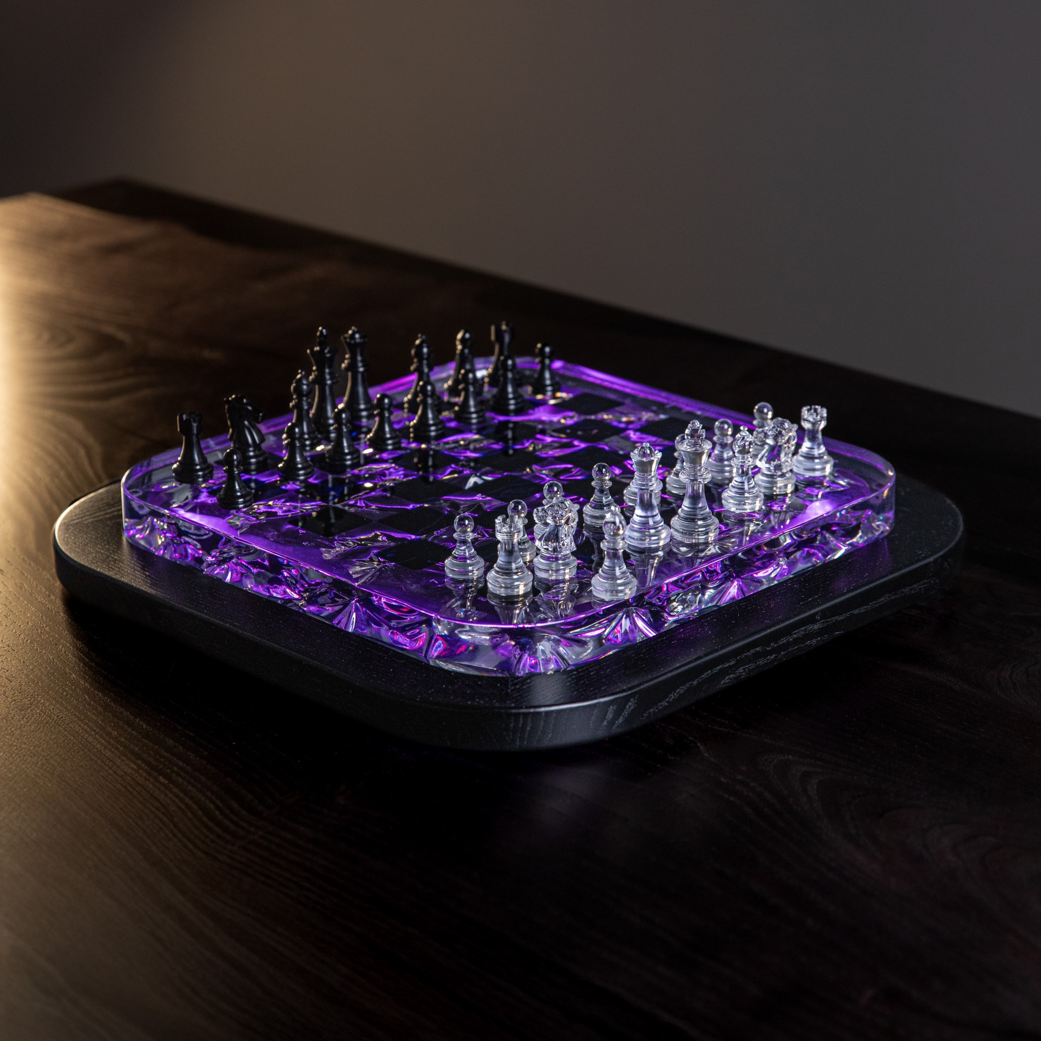 Витончені, мінімалістичні, але з потужним характером — ці шахи створені з прозорої епоксидної смоли, щоб підкреслити оригінальність форми. Їхня рамка з делікатною підсвіткою перетворює кожну партію на перформанс, а саму дошку — на артоб’єкт у вашому інтер’єрі.