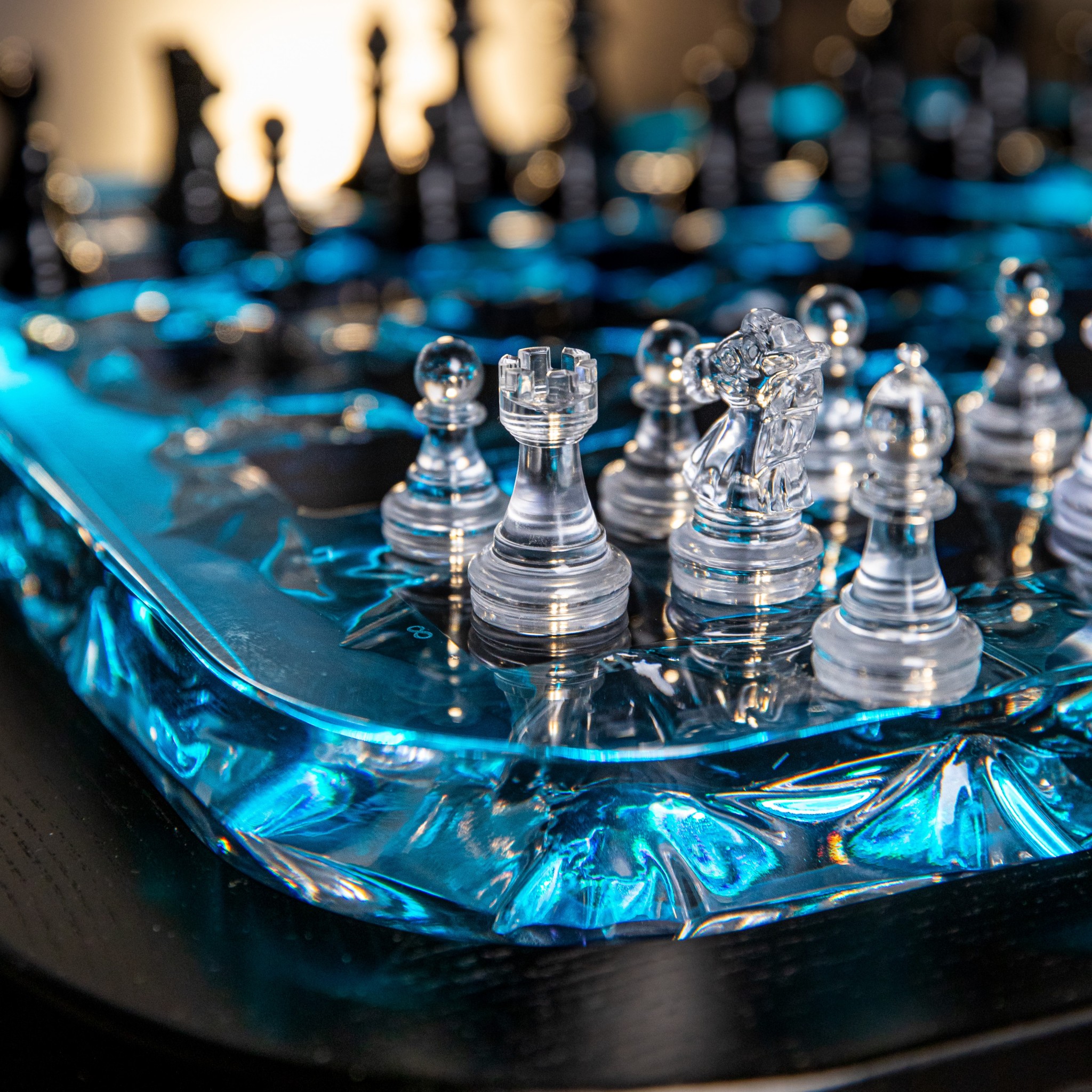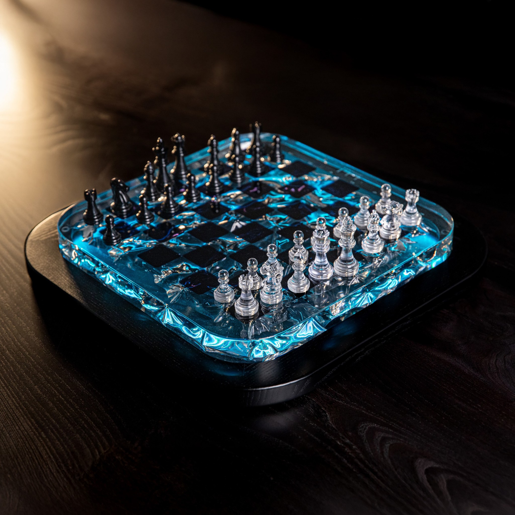 Mementum — шахи з прозорої епоксидної смоли і дерева з підсвіткою