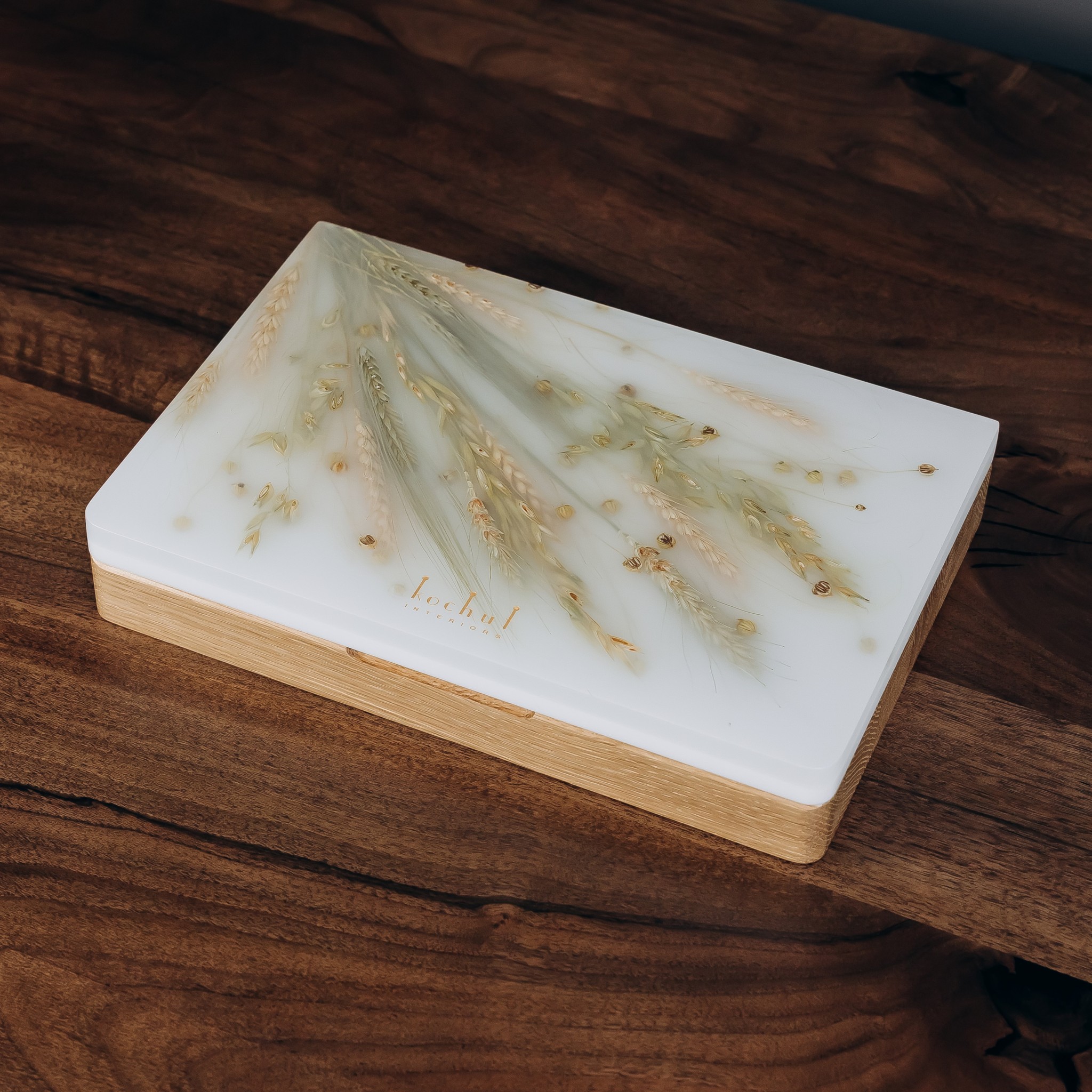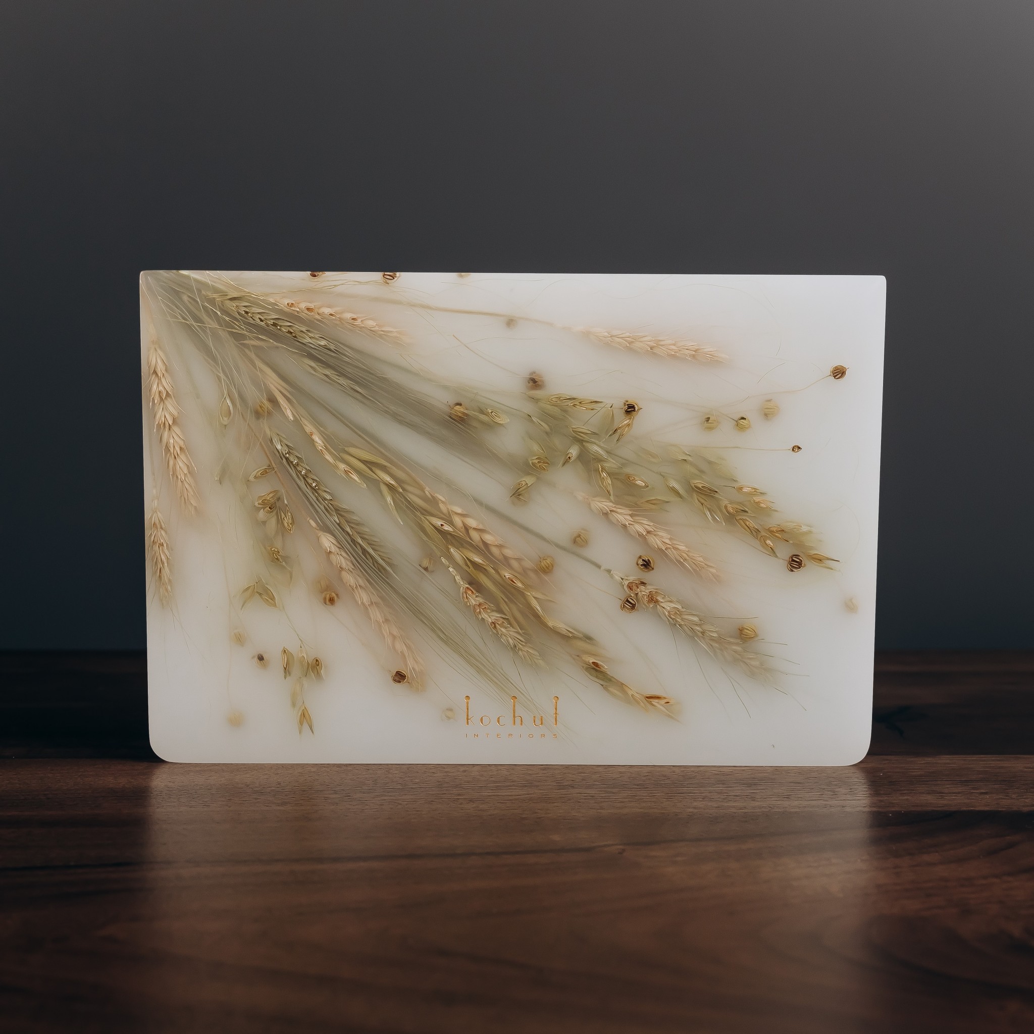 Вони занурені у світлу дворівневу епоксидну смолу, що створює ефект ранкового туману та підкреслює природну красу колосся.