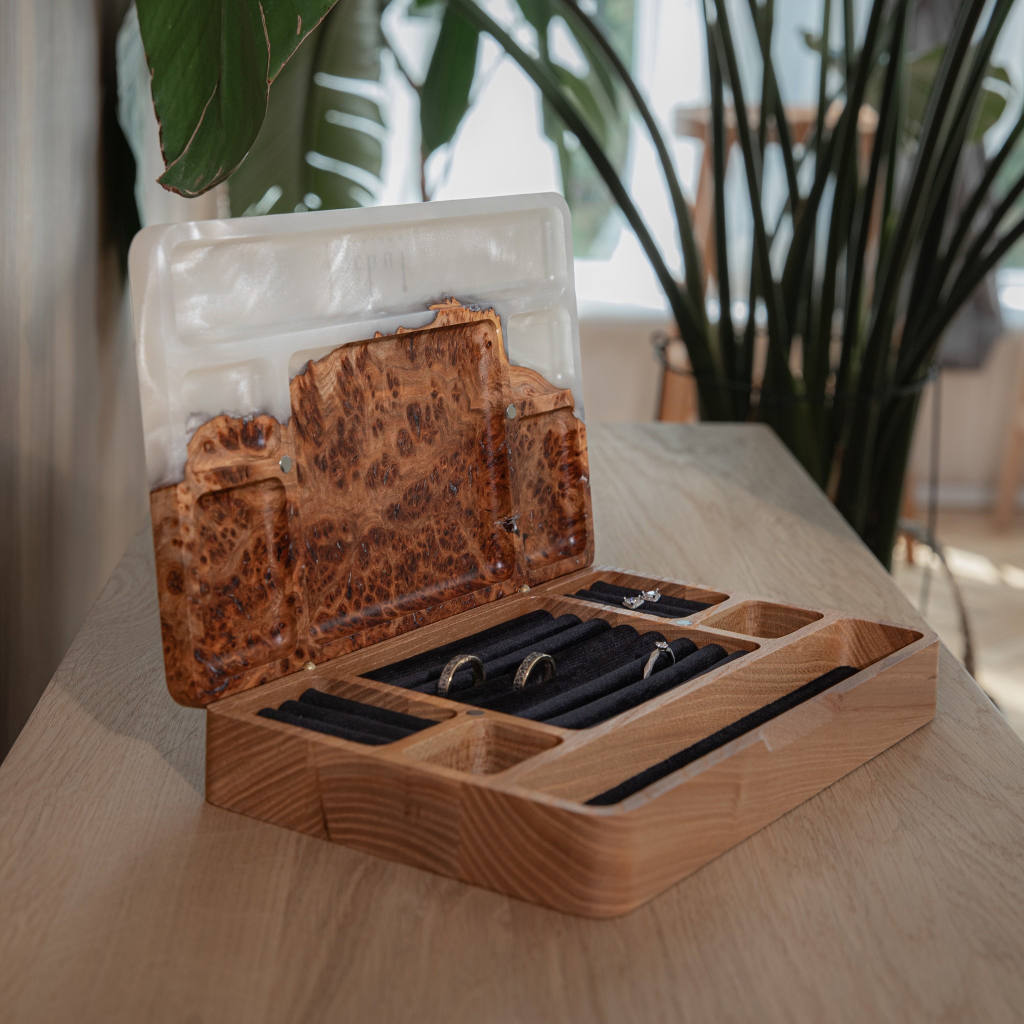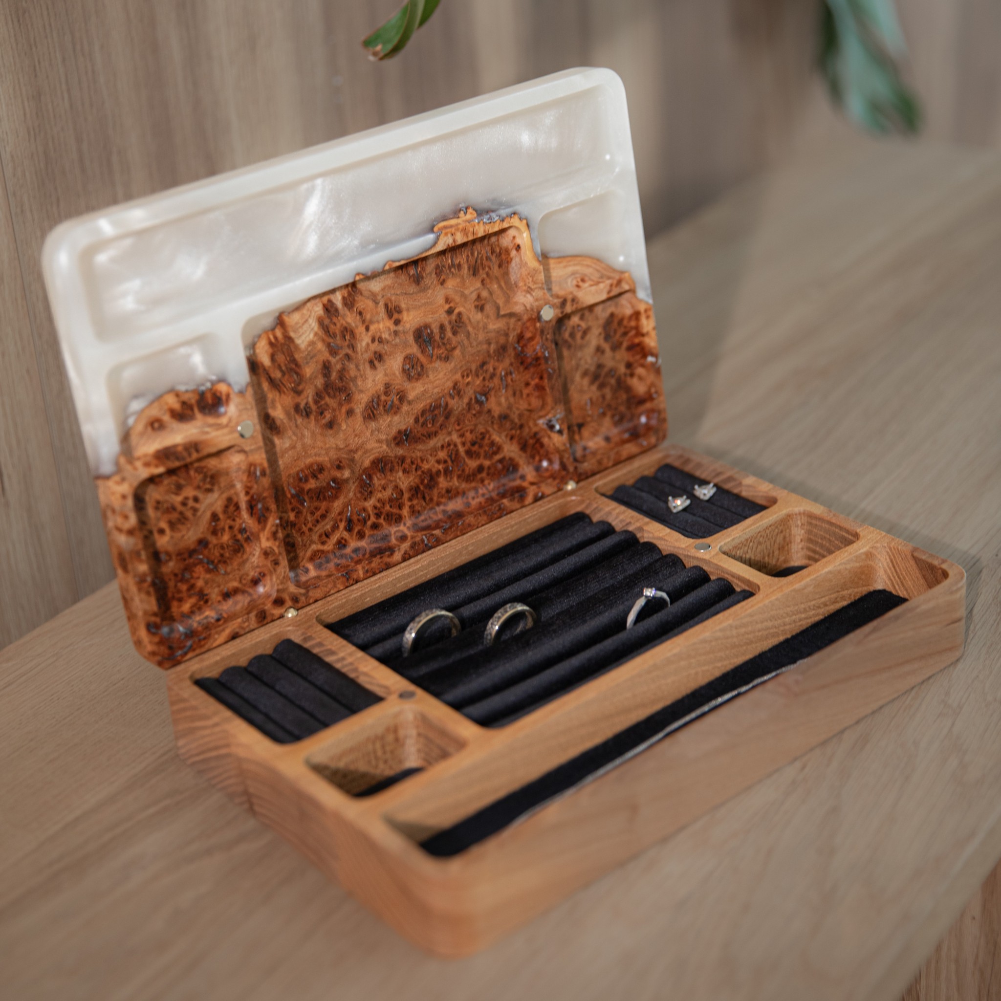 Орнамент. Платинум — скринька для прикрас з дерева та епоксидної смоли| В'яз, біла смола (максі розмір)