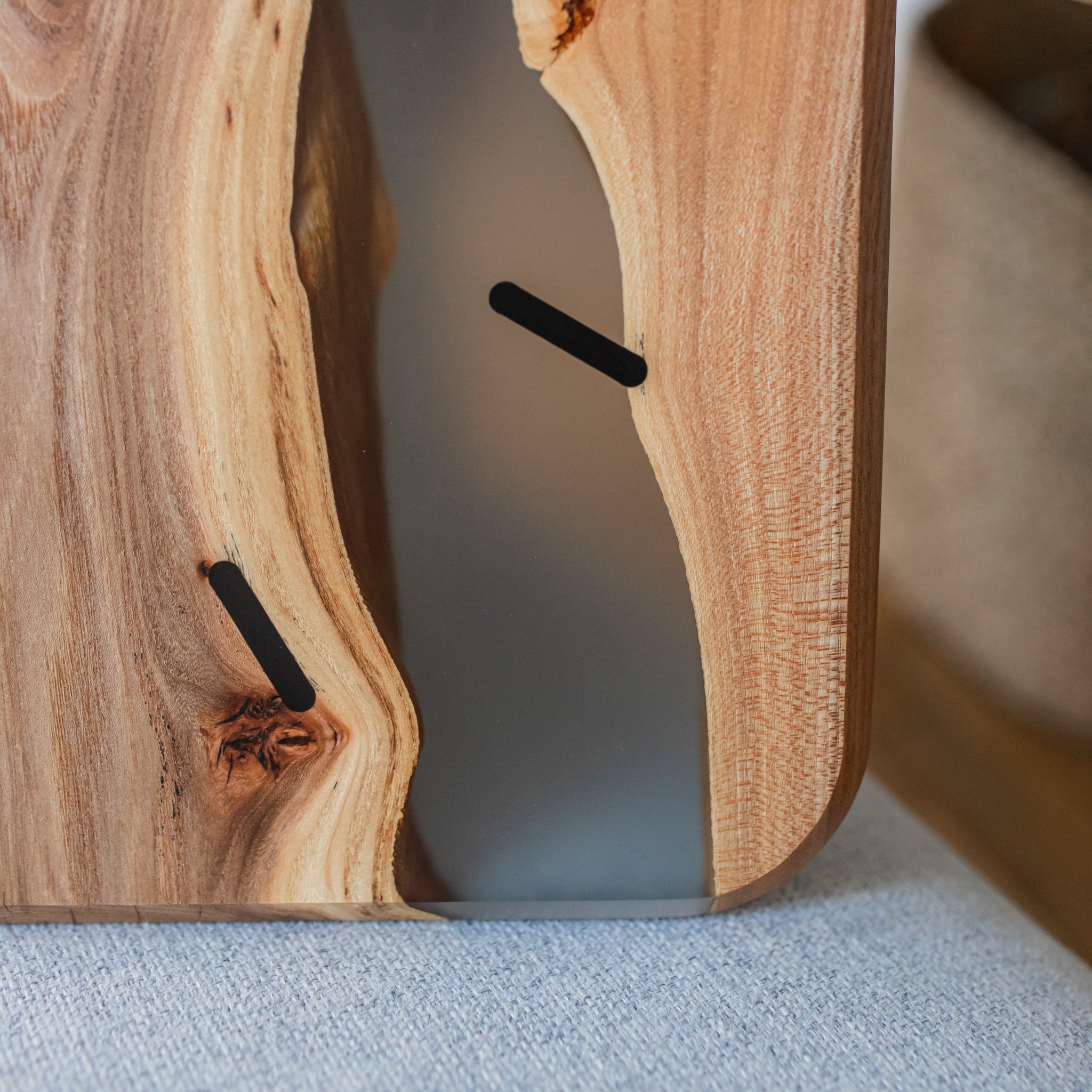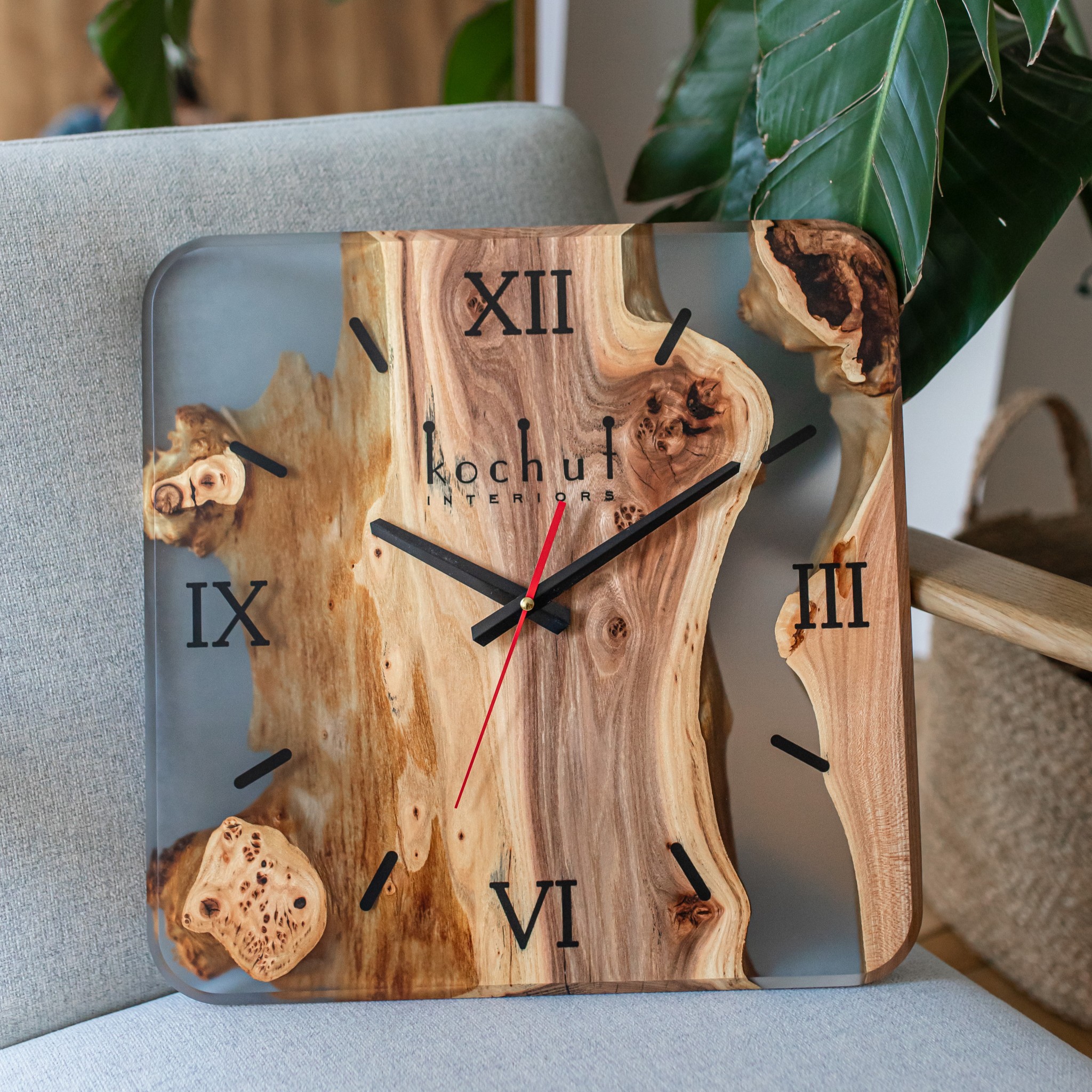 Настінний годинник з дерева та епоксидної смоли не лише прикрасить ваш дім чи офіс, він – це стильний ексклюзивний подарунок на новосілля, день народження, новий рік.  За бажання, фірмову коробку можна пов’язати елегантною святковою стрічкою. А якщо, наприклад, зробити гравіювання логотипа компанії – ще й матимете оригінальний корпоративний подарунок колезі чи керівнику.