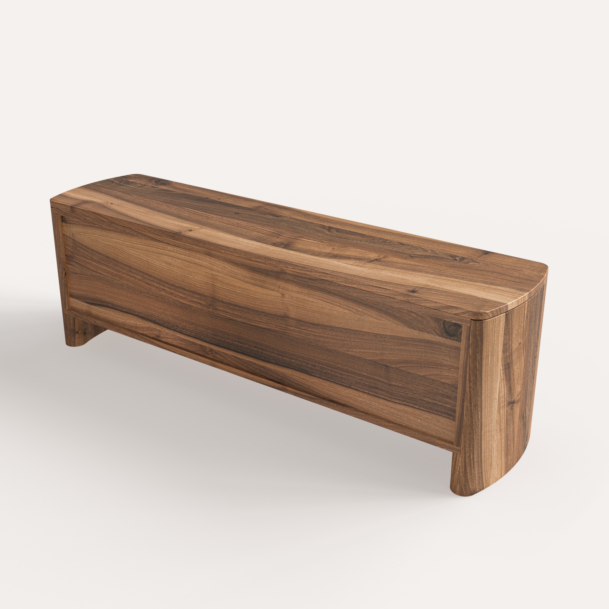 Жива структура горіха, природні сучки та хвилястий контур роблять кожну тумбу унікальною.