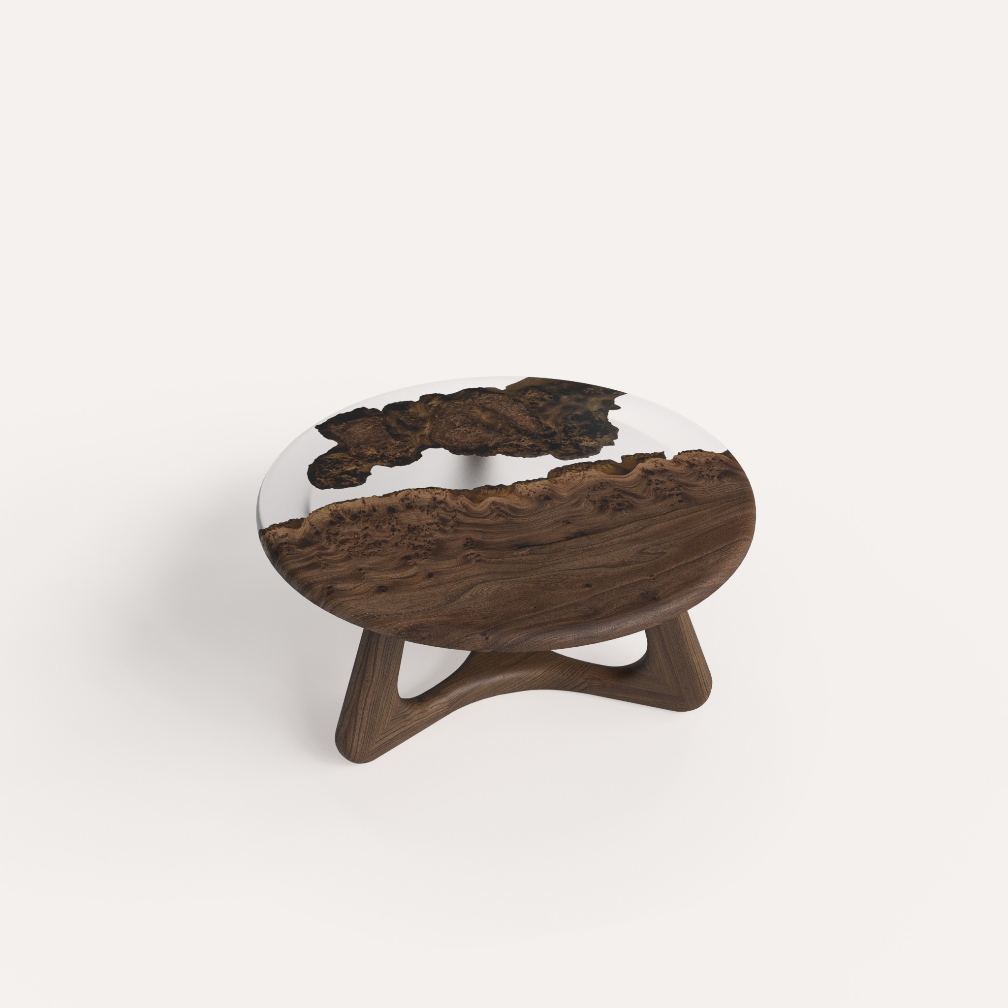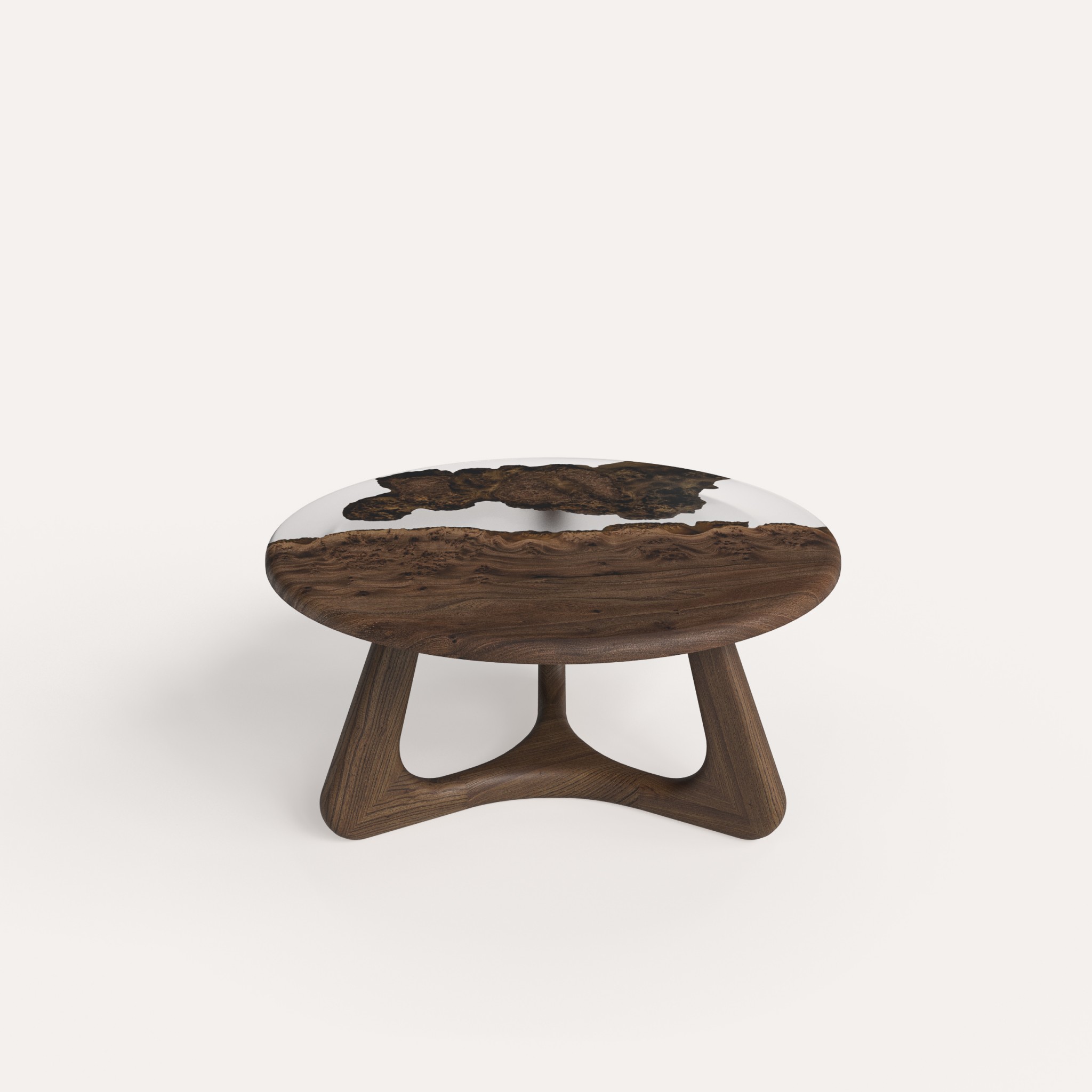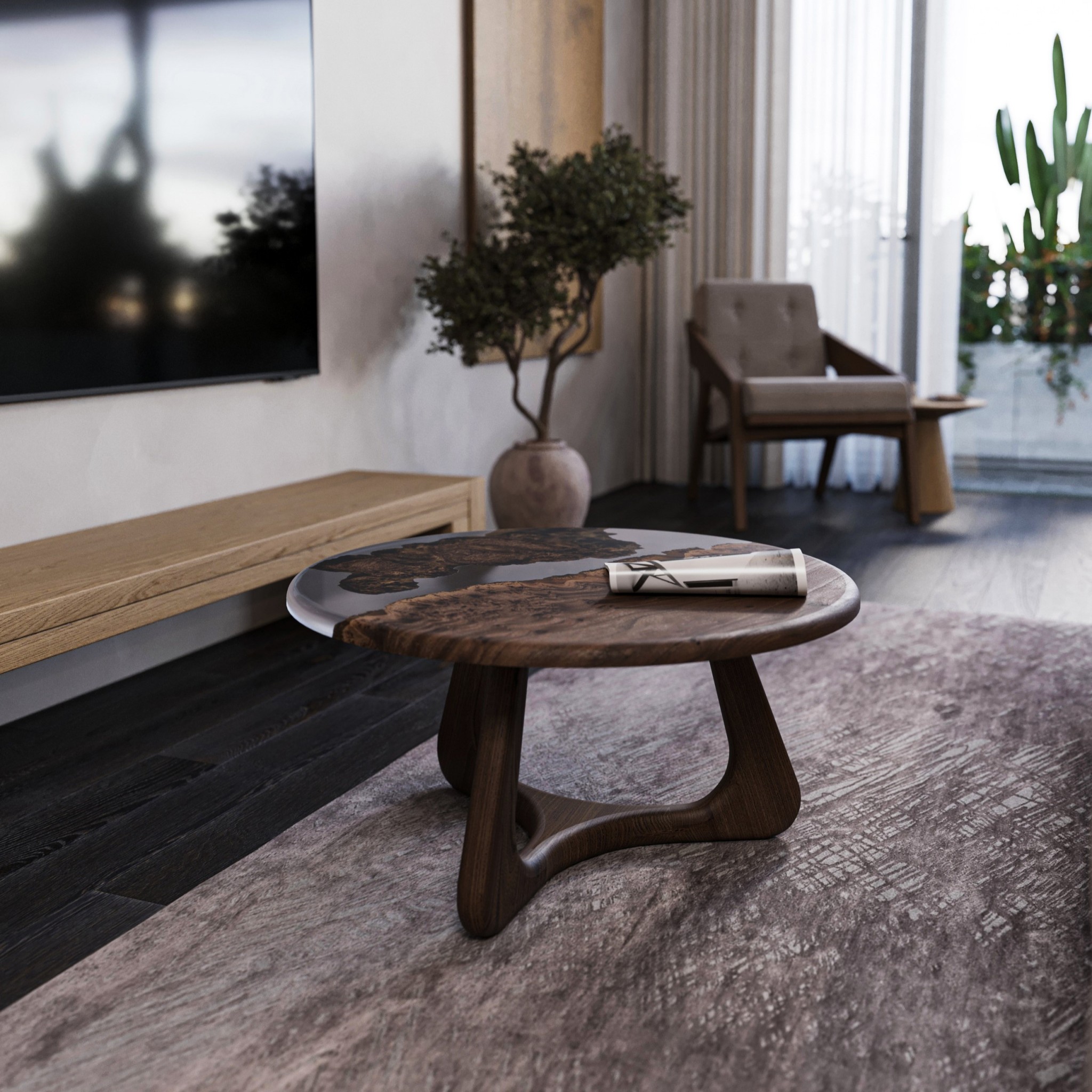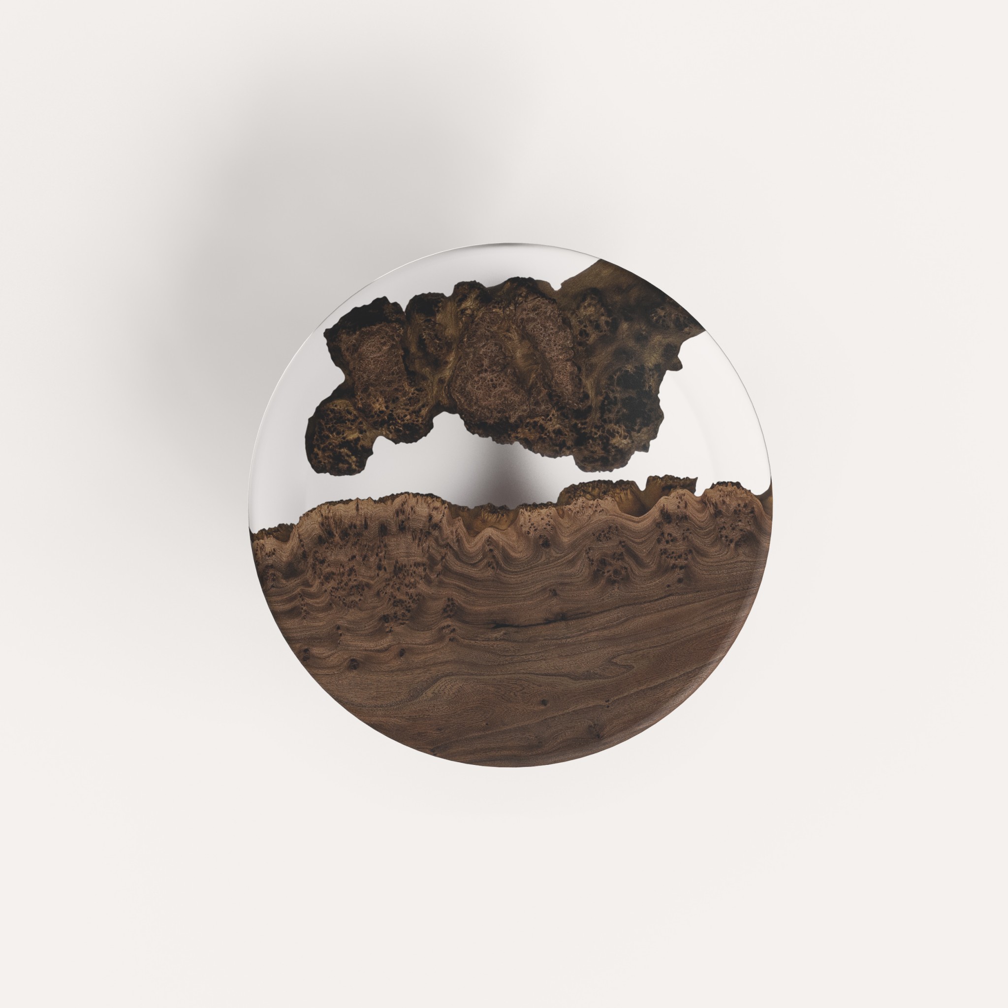 Колекція народжена з благородного скельного в’яза й прозорої епоксидної смоли, де кожен фрагмент деревини зберігає свою енергію, а смола підкреслює її глибину й живу динаміку.