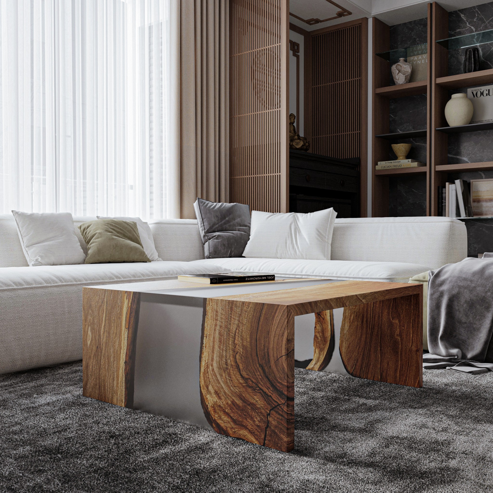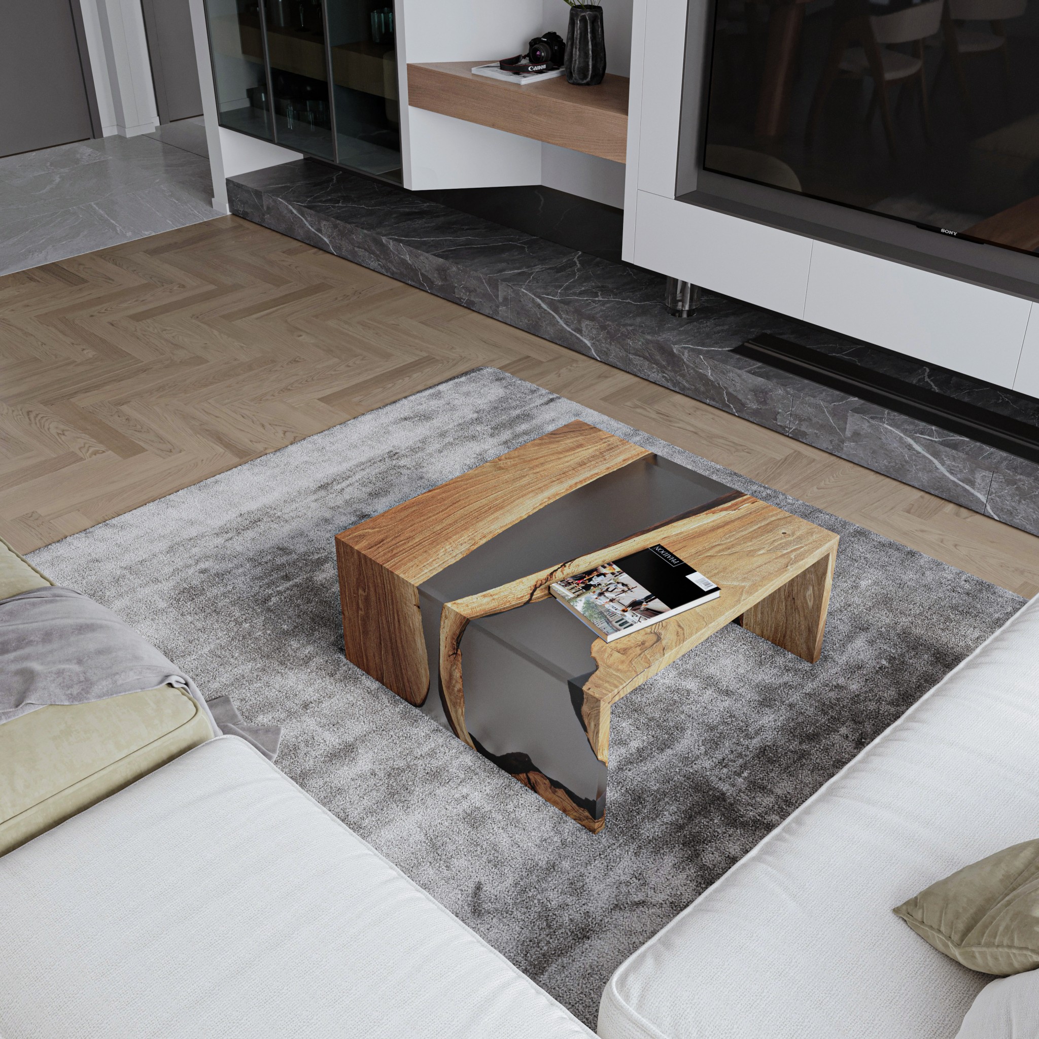Основа з європейського горіха відзначається високою міцністю й довговічністю. Епоксидна смола відповідає європейським стандартам безпеки, а захисне поліуретанове покриття зберігає поверхню приємною на дотик і стійкою до вологи, плям та подряпин. Кожен стіл виготовляється вручну — з увагою до деталей, що робить кожен виріб унікальним.